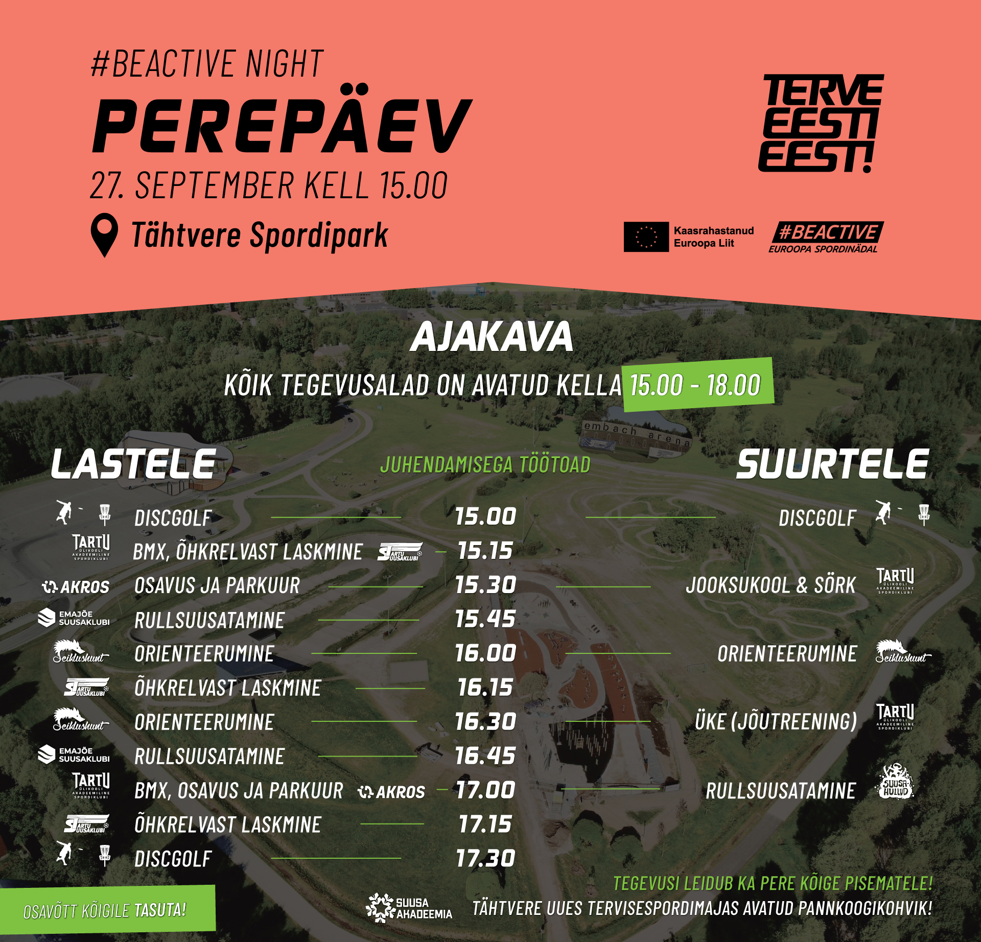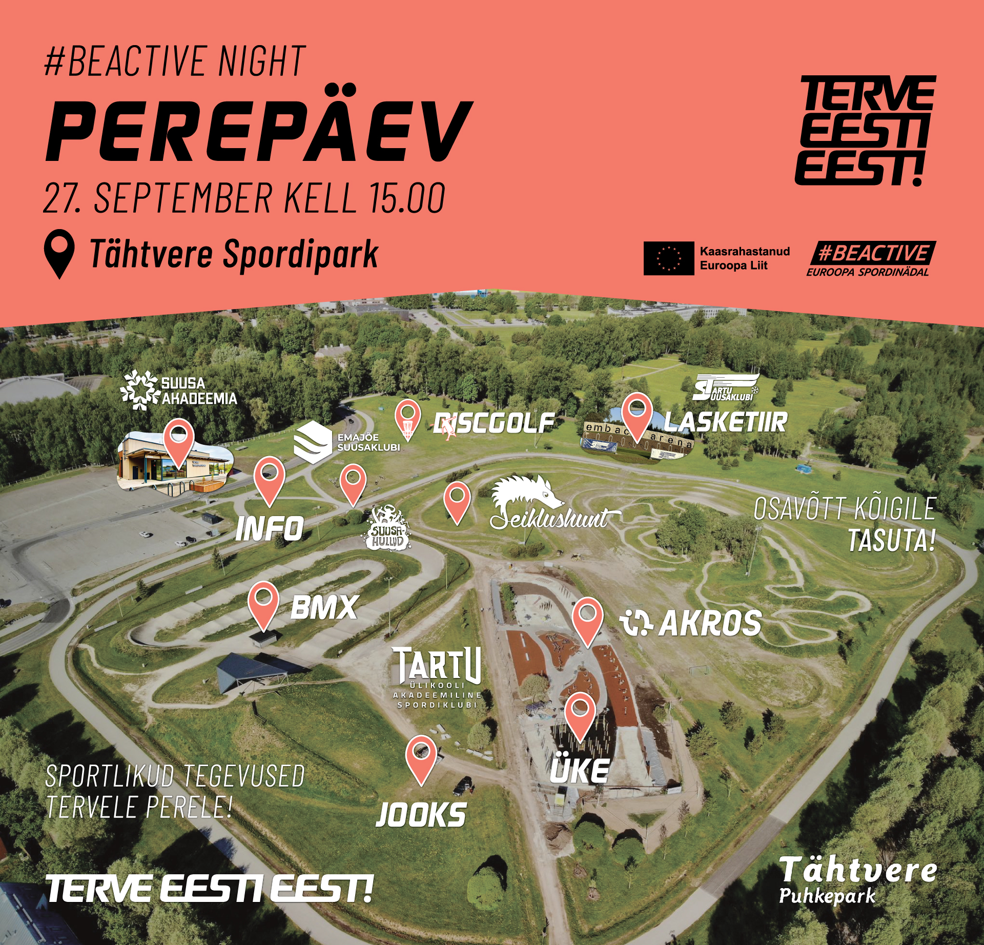 Tule koos pere ja sõpradega Spordinädala tippsündmusele – #BeActive Night perepäevale Tartus! Päev on täis liikumisrõõmu ja avastamist: